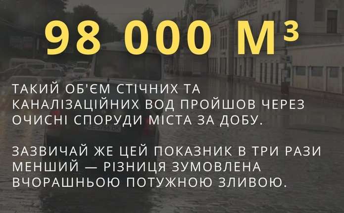 “Уявіть собі розмір стадіону, але висотою з девятиповерхівку. Уявили? Так ось, 11 червня випав приблизно такий же об’єм опадів, і це за короткий проміжок часу. А зливова мережа міста на це не розрахована, вона стара і місцями об’єднана з каналізацією. Відтак потрібен час, аби такий об‘єм зумів пройти мережами, відповідно — маємо підтоплення.