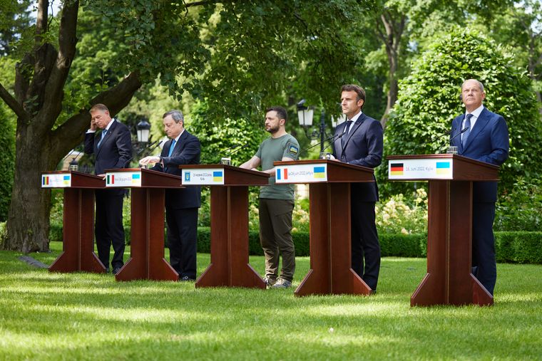 Після зустрічі з Володимиром Зеленським у Києві лідери Німеччини, Італії, Румунії та Франції висловилися за негайний статус кандидата на членство в ЄС для України.
