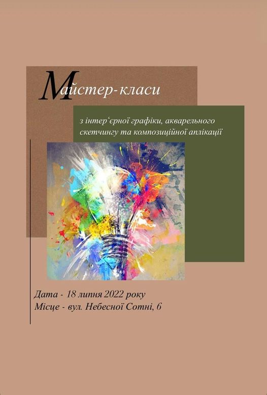 У Гуманітарному штабі в Чернівцях (вулиця Небесної Сотні, 6) проведуть безкоштовний майстер-клас з інтер’єрної графіки, акварельного скетчингу та композиційної аплікації.
