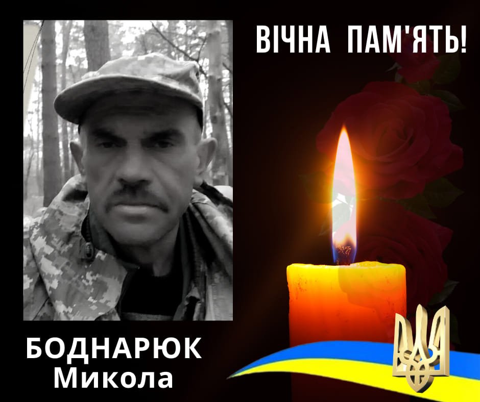 Микола Боднарюк був жителем села Стара Жадова. У Новотошківському Луганської області воїн отримав поранення, несумісні з життям. Через інтенсивність бойових дій тіло чоловіка неможливо евакуювати для поховання.