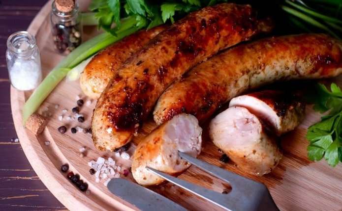 Перед подачею зніміть фольгу і наріжте домашню ковбаску на шматочки. Невеличкі ковбаски можна подавати цілком.