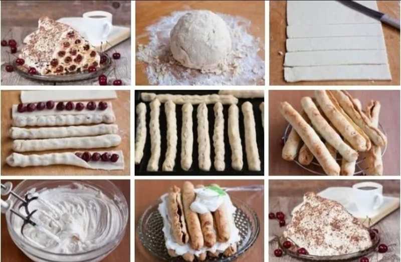 Взяти одну смужку, викласти вишню по всій довжині і защепити краї так, щоб вийшла акуратна закрита трубочка. Таким чином приготувати трубочки з усієї кількості тіста. Їх в ідеалі має вийти 15 штук.