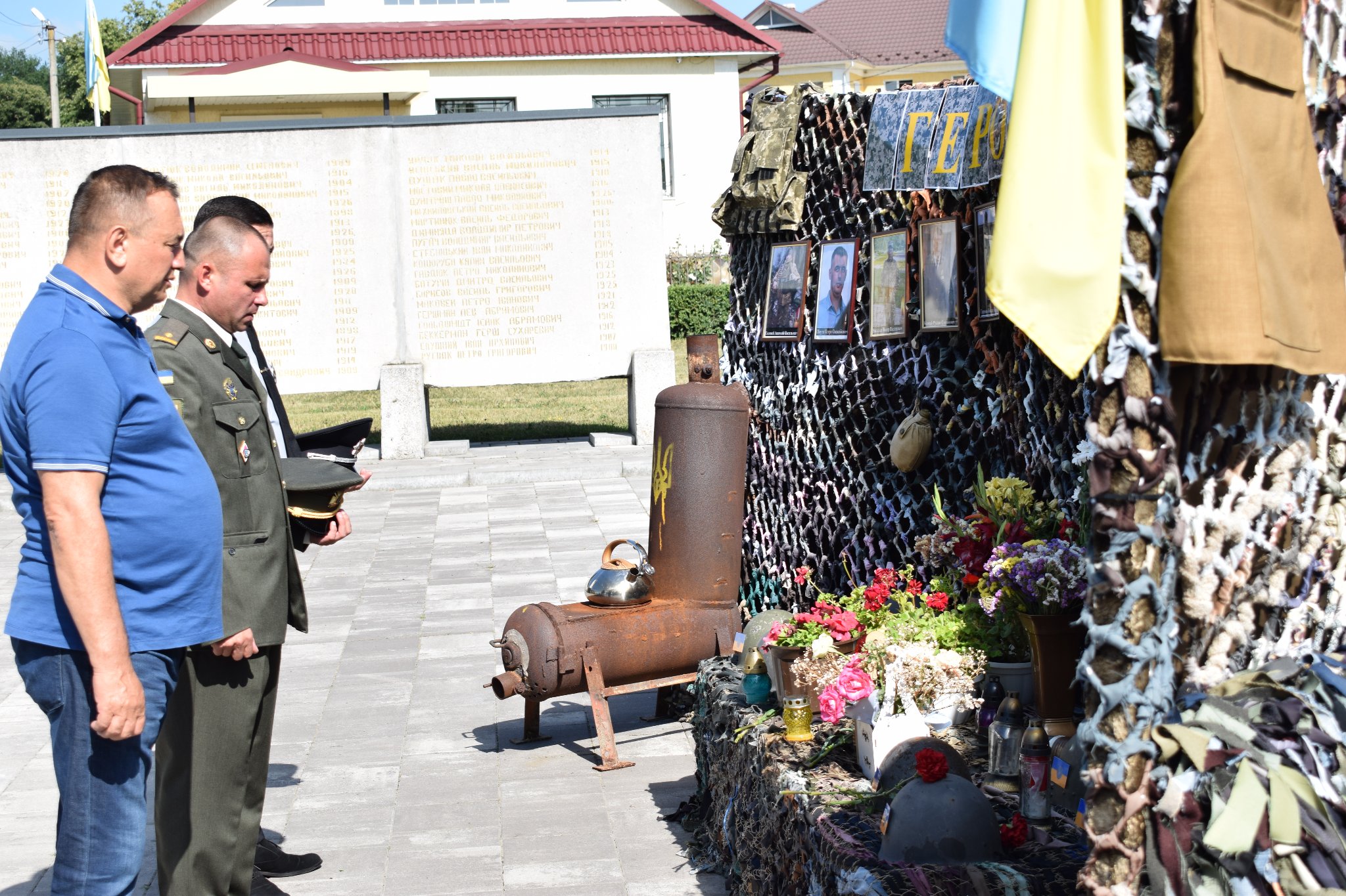 Тож  аби віддати шану нашим землякам, які полягли в російсько-українській війні,  сьогодні, 28 липня, Сокирянський міський голова Василь Козак, секретар міської ради Любов Степаненко, заступник міського голови Оксана Бабій, керуюча справами виконавчого комітету Ауріка Мойсеєнко, начальник відділення поліції №1 (м. Сокиряни) Сергій Лунга, т.в.о. начальника другого відділу Дністровського районного територіального центру комплектування та соціальної підтримки, майор Іван Серебрянський, поклали квіти до символічної експозиції, присвяченої Героям Сокирянщини, які загинули захищаючи рідну землю від російської навали.