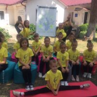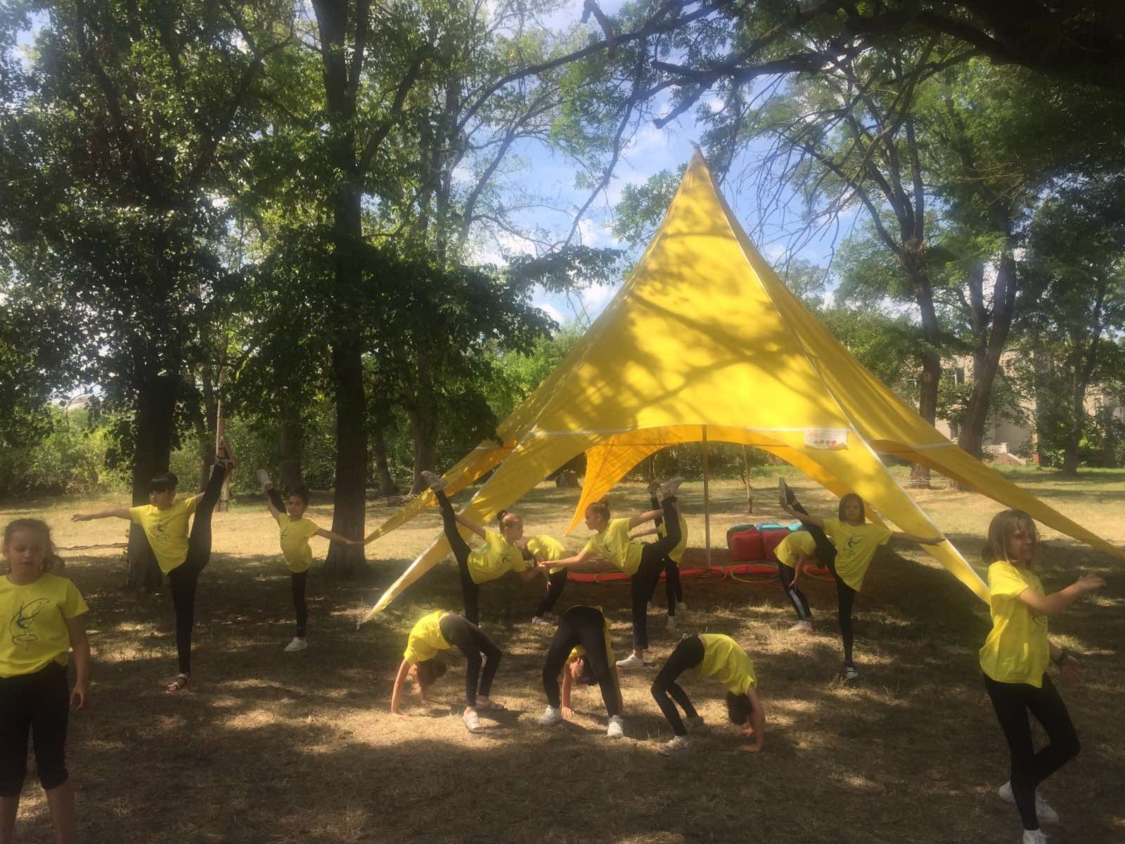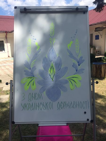 Вихованці табору представили патріотичний флешмоб «Ой у лузі червона калина», взяли участь у конкурсі малюнка на асфальті та створили вітальну листівку.