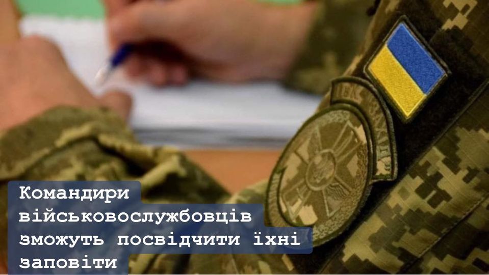 Командири військовослужбовців зможуть посвідчити їхні заповіти