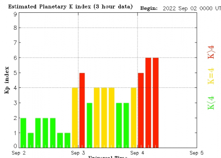 Після невеликих коливань в суботу, 3 вересня, магнітосфера була спокійною в неділю тільки вранці. З обіду ситуація знову почала погіршуватися і до вечора Землю накриє новою магнітною бурею.