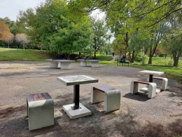 Від сьогодні на майданчику біля другого озера з’явилась нова зона відпочинку – тенісні та шахові столи.