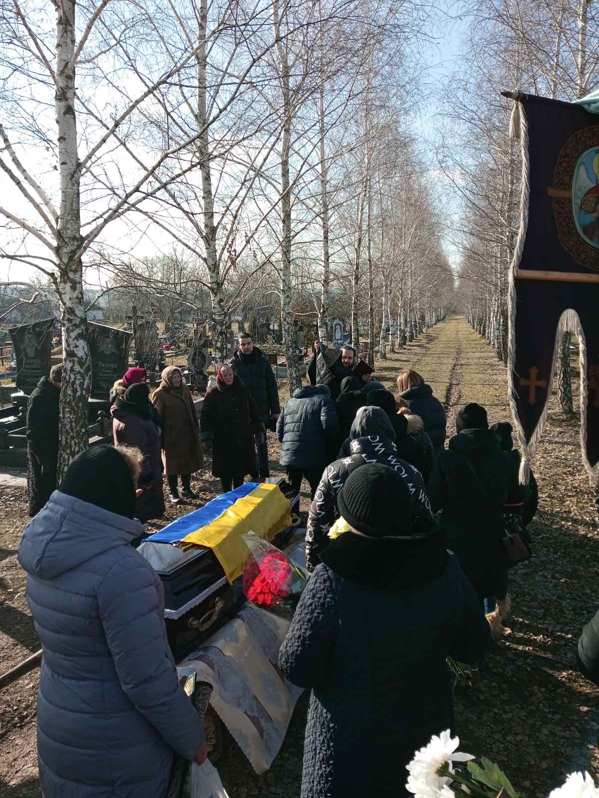 Мужнього Героя поховали на кладовищі у рідному селі Гвіздівці.
