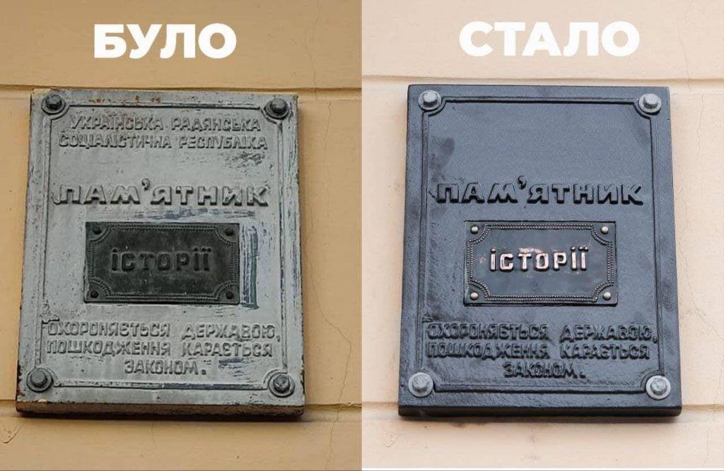 «Ми спробували відреставрувати одну дошку. Забрали написи, які вважаємо є радянськими маркерами. Інформаційний вказівник пофарбували та відреставрували бронзову частину», — каже заступник мера.