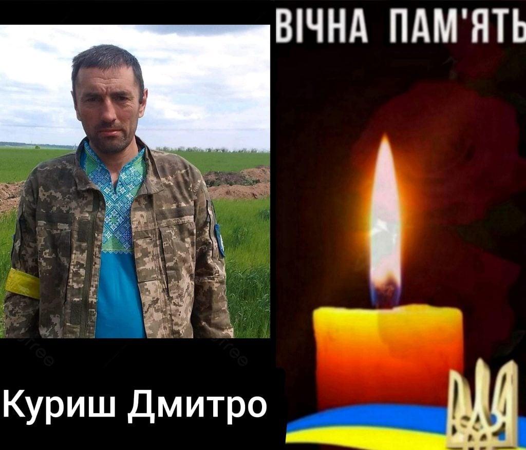 Дмитро Куриш був воїном військової частини А7186. Загинув 1 лютого 2023 року під час виконання бойового завдання в Донецькій області.