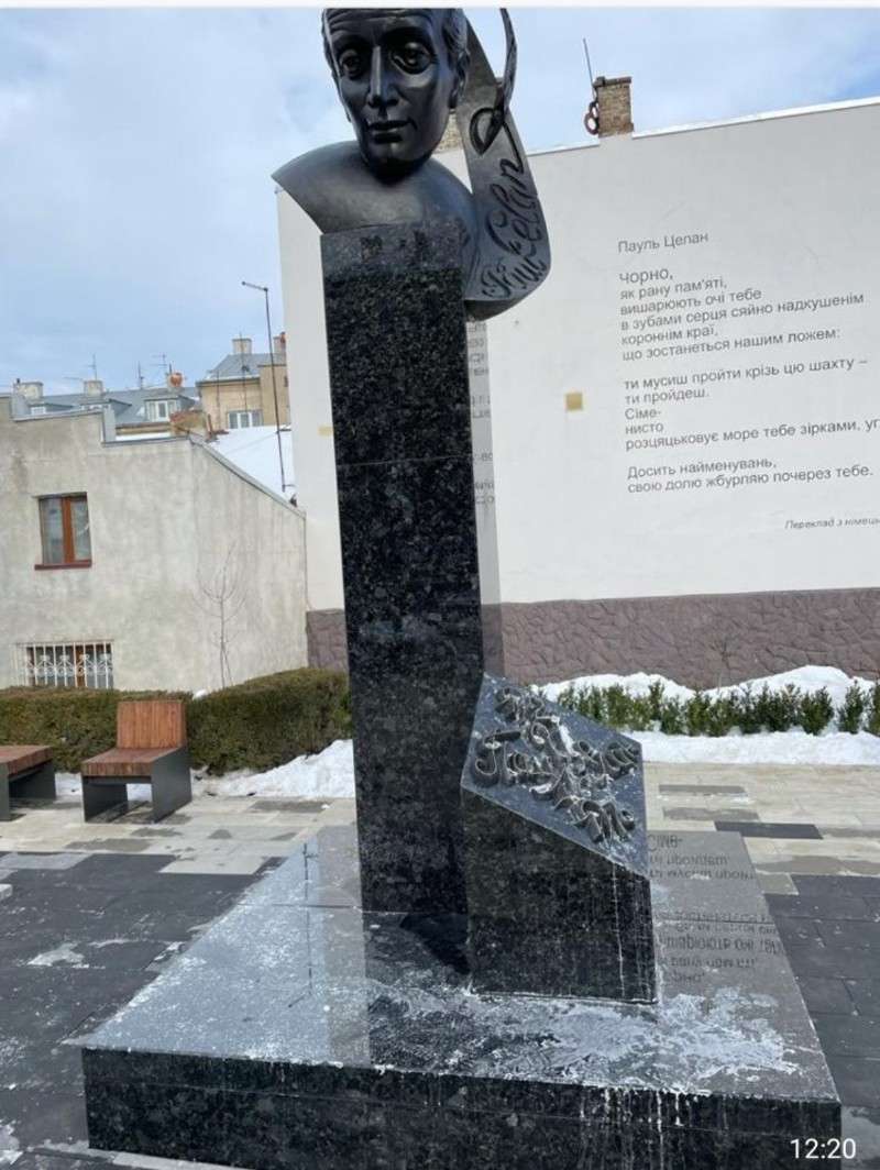 “Як позбавитись від стресу в нинішніх обставинах? Не дуже чемні люди, наприклад, займаються вандалізмом. Так, 10 лютого 2023 року невідомі облили щойно відреставрований пам’ятник Паулю Целану фарбою. Сподіваємось, їм полегшало… Працівники Тресту зеленого господарства навіть у вечірній час готові усунути наслідки вандалізму, задля комфорту мешканців і гостей міста”, – йдеться у дописі.