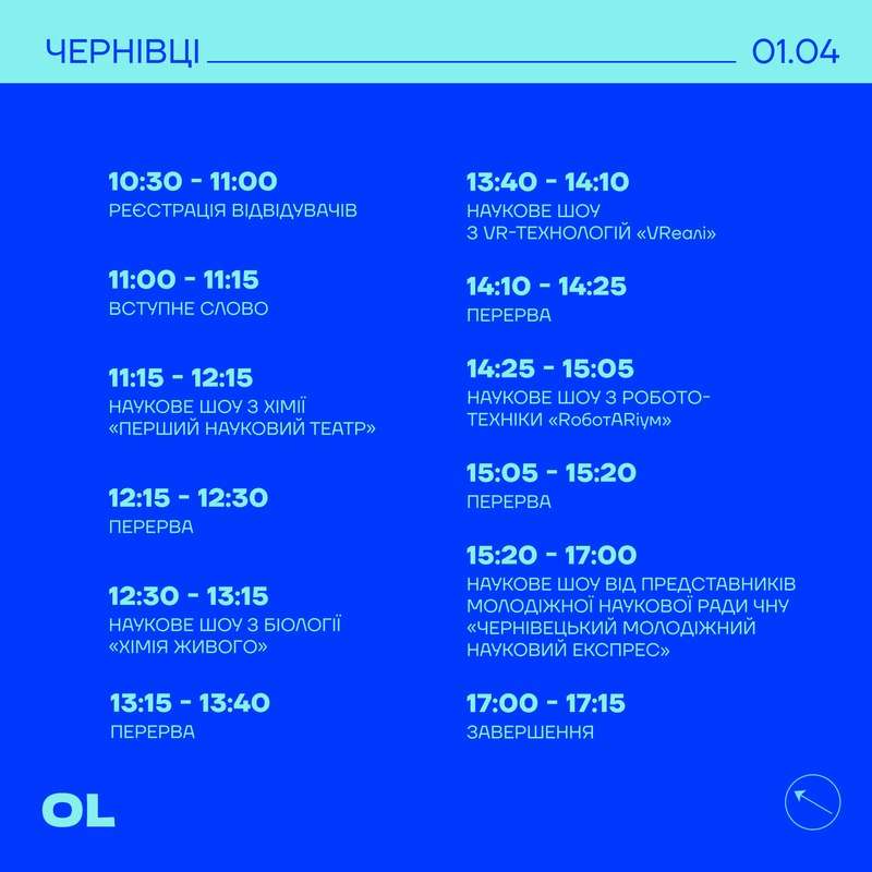 1 квітня 2023 року у Мармуровій залі Чернівецького національного університету ім. Юрія Федьковича проходитиме «Науковий фестиваль OL».