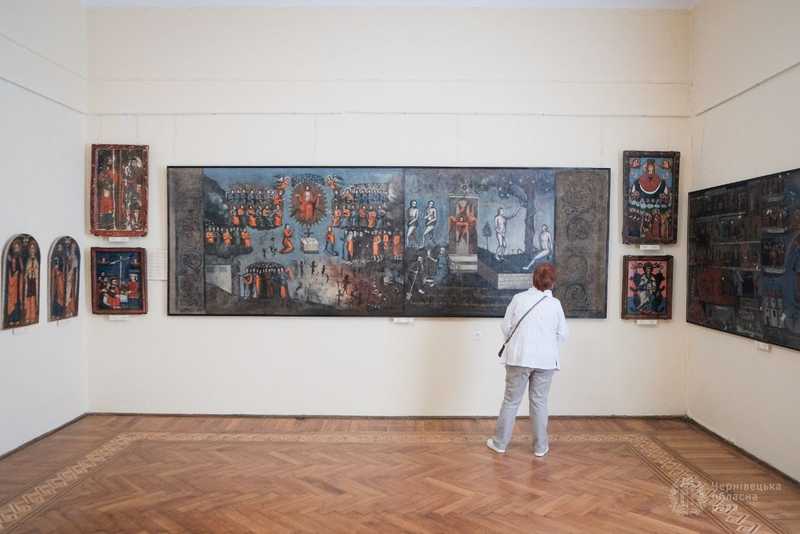 Сьогодні у художньому музеї презентували відреставровану ікону XVIII століття «Страшний суд». Це старовинне полотно віднайшли під час експедиції понад 30 років тому на дзвіниці церкви у селі Усть-Путила. На ньому зображено два біблійних сюжети – «Страшний суд» та «Вигнання з раю». Довжина ікони становить 4,40 м, ширина – 1,47 м.