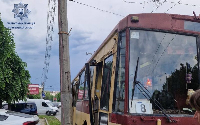 У ДТП в Чернівцях водій авто зіткнувся з тролейбусом, через що другий в’їхав у електроопору