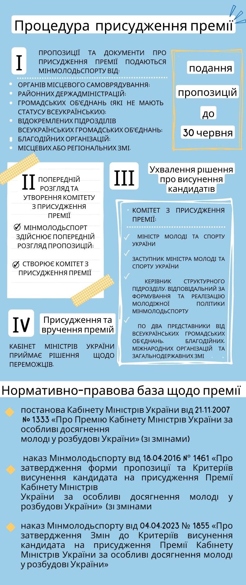 - пропозиція про присудження Премії за формою, затвердженою Мінмолодьспортом;