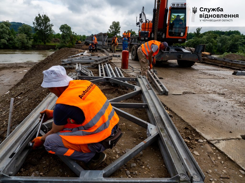 За словами пресслужби, зараз роботи сконцентровані на зведенні підпірної стінки, яка повинна укріпити берег річки Прут зі сторони села Дубівці. Також триває процес збору самого металевого моста.