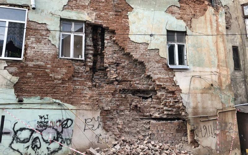 Будинок у центрі Чернівців продовжує обвалюватися: посипалася знову цегла зі стіни – фото