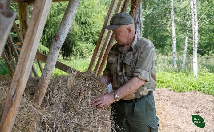 Працівники Чернівецької філії розпочали заготовляти сіно, якого планують зібрати 24 тонни. А ще – 2 тонни вівса та 3 тонни кукурудзи. Це забезпечить достатньо поживних речовин для зубрів взимку. Крім того, лісівники виготовляють кормові віники зі стебел топінамбура, які також додають у раціон.
