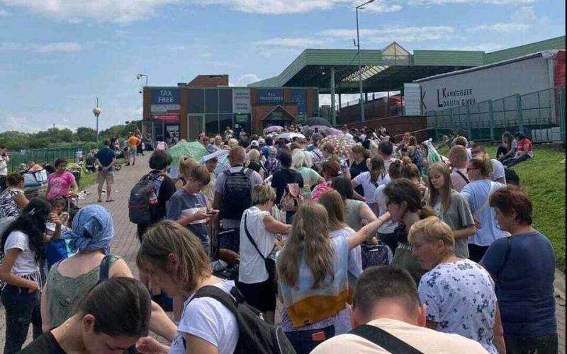 Видно, що в черзі сотні людей. Причому черги спостерігаються в обидва напрямки.
