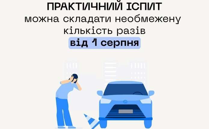 “МВС скасувало обмеження щодо кількості спроб складання практичних іспитів для отримання водійського посвідчення”, – йдеться у повідомленні. Зокрема, практичний іспит можна складати необмежену кількість разів від 1 серпня.