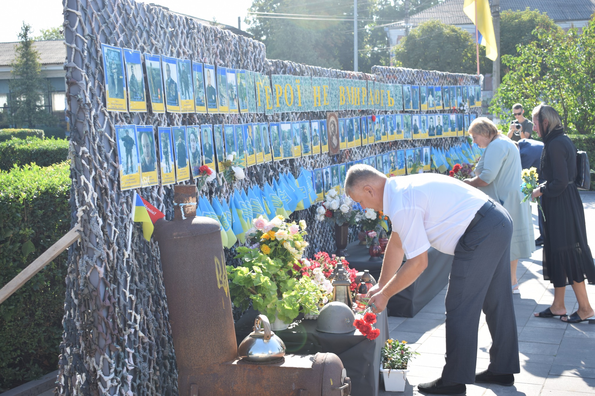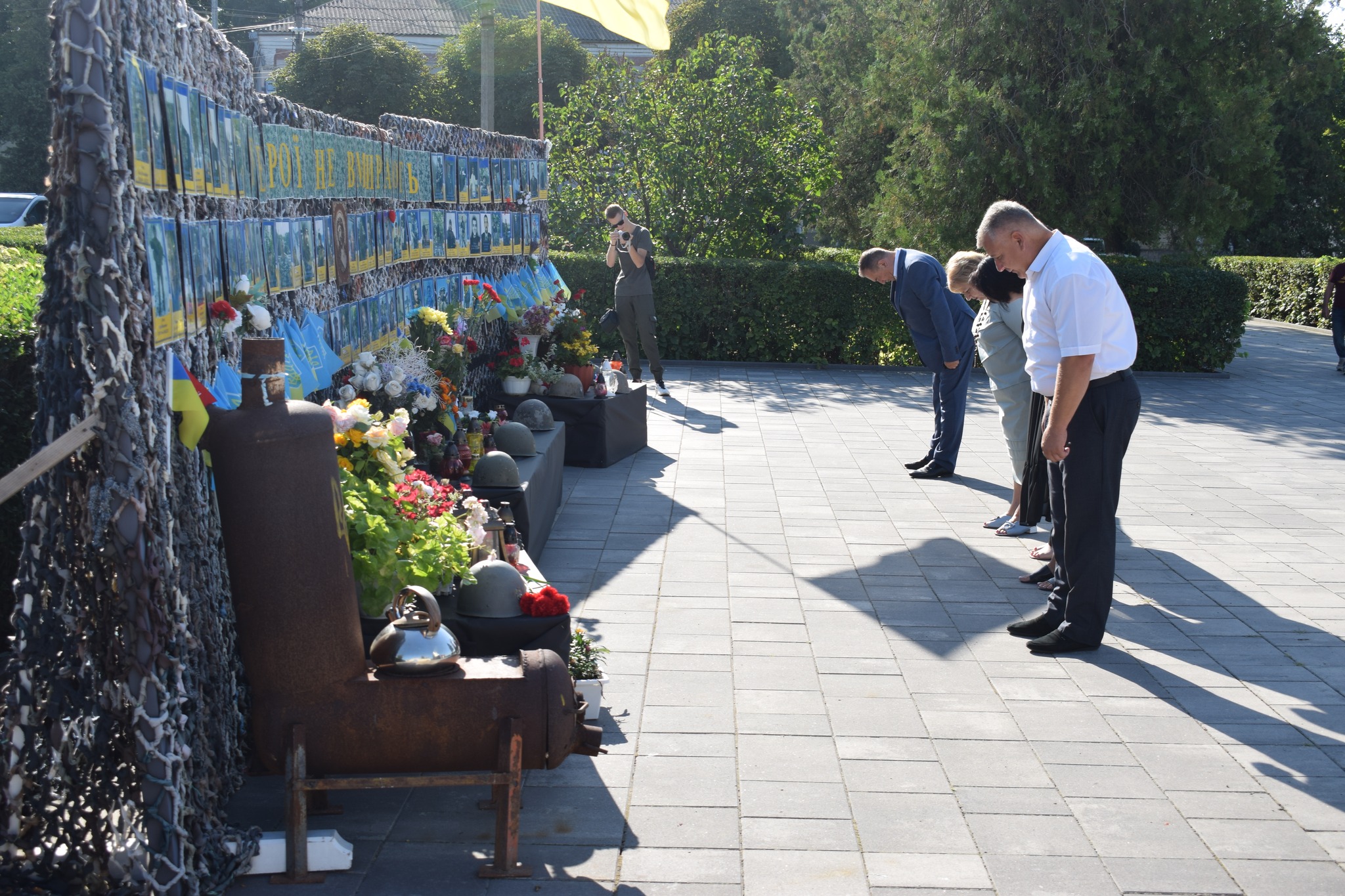 У День Незалежності України міський голова Василь Козак, секретар міської ради Любов Степаненко, перший заступник міського голови Іван Гангал та заступник міського голови Оксана Бабій, віддали шану полеглим оборонцям рідної землі, поклавши квіти до символічної експозиції у місті Сокиряни.