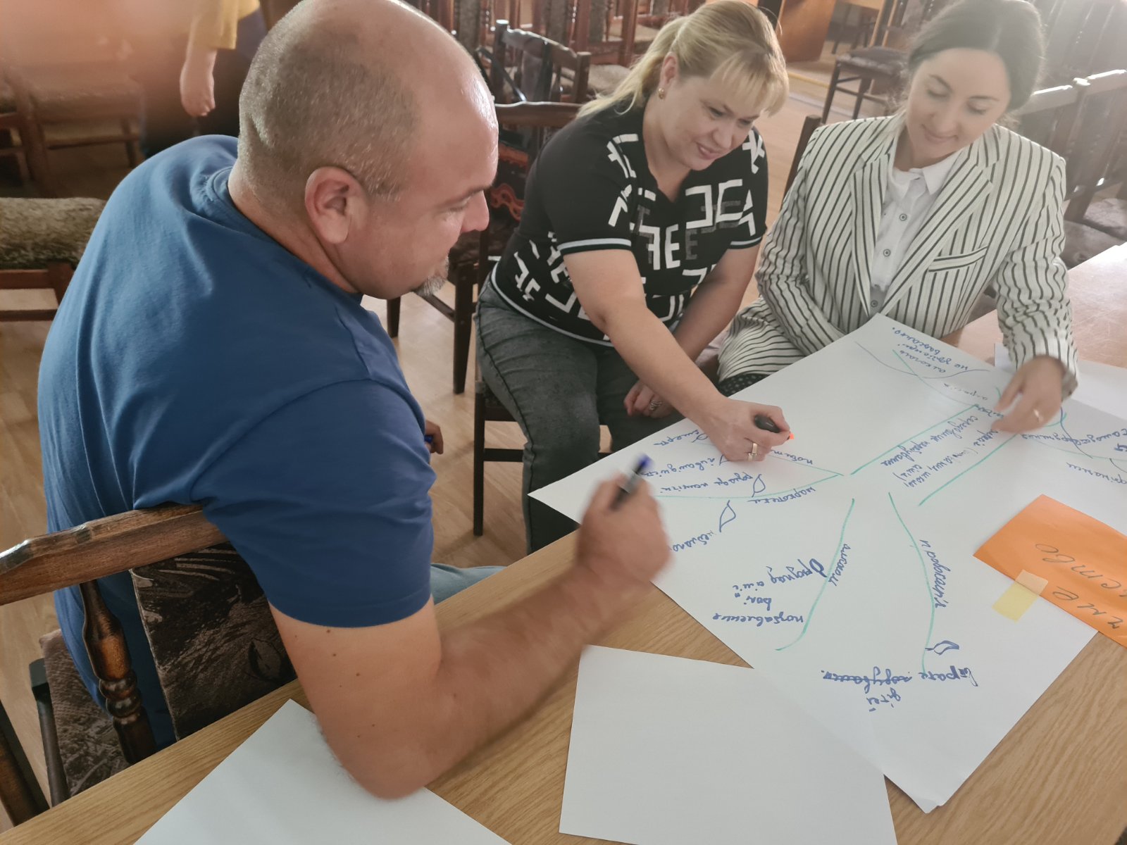 Тренінги були насичені різноманітними вправами, груповою роботою, що сприяло отриманню нових навичок та знань, потрібних при вирішенні проблеми.