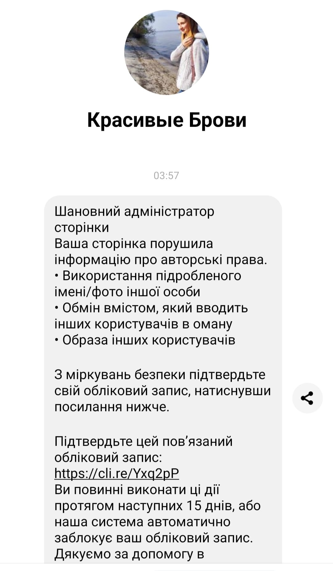 Зловмисники використовують частину фотографій і відео зі справжніх акаунтів, аби замаскуватися та втертися в довіру, тож будьте максимально уважні та не діліться особистою інформацією, поки не переконаєтеся, що переписуєтеся зі справжньою людиною.