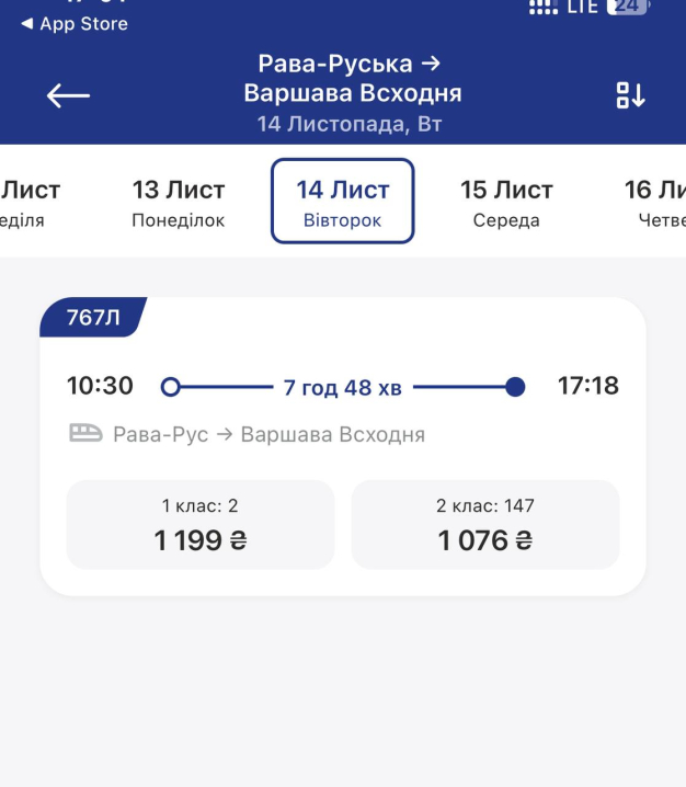 Так, на сайті Укрзалізниці вказано, що поїзд з Варшави до Чернівців прибуде 14 листопада. Водночас у зворотному напрямку перший рейс вирушить 15 листопада. Йдеться про потяг з пересадкою у Раві-Руській.