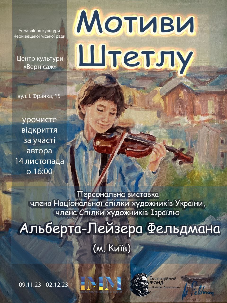 У чернівецькому центрі культури «Вернісаж» по вулиці Івана Франка, 15 відбудеться урочисте відкриття персональної вистави «Мотиви Штетлу».