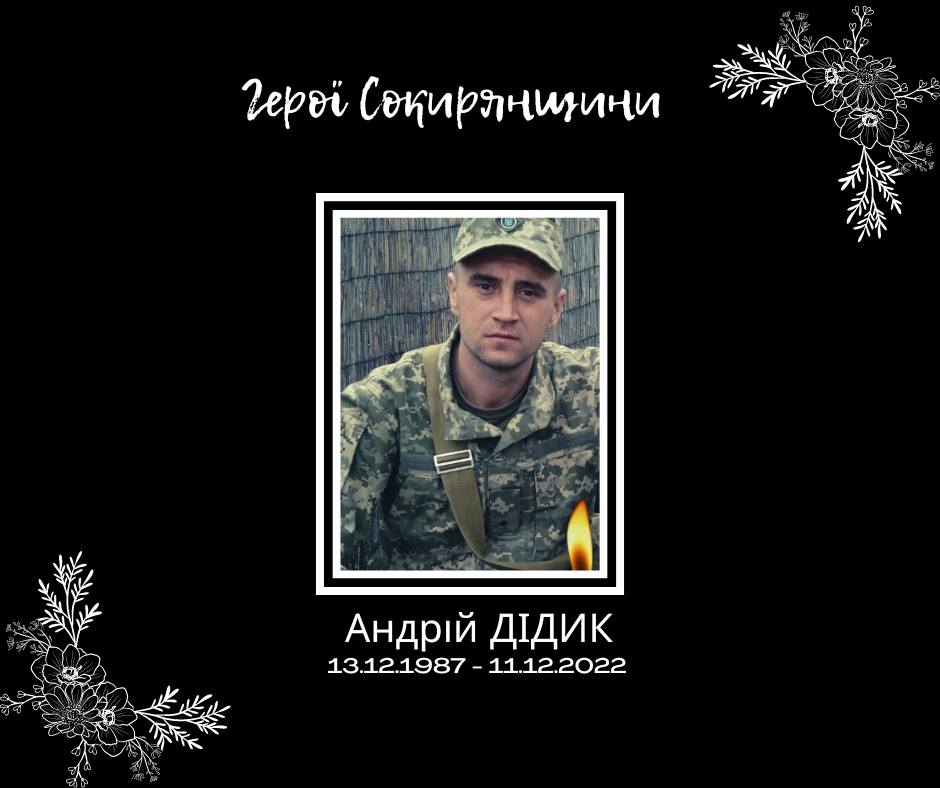Андрій Дідик загинув на Бахмутському напрямку у грудні милого року.