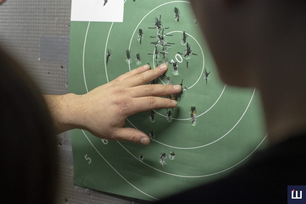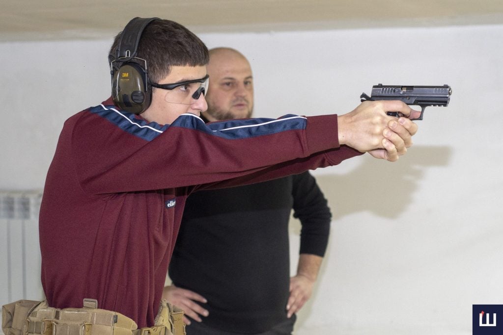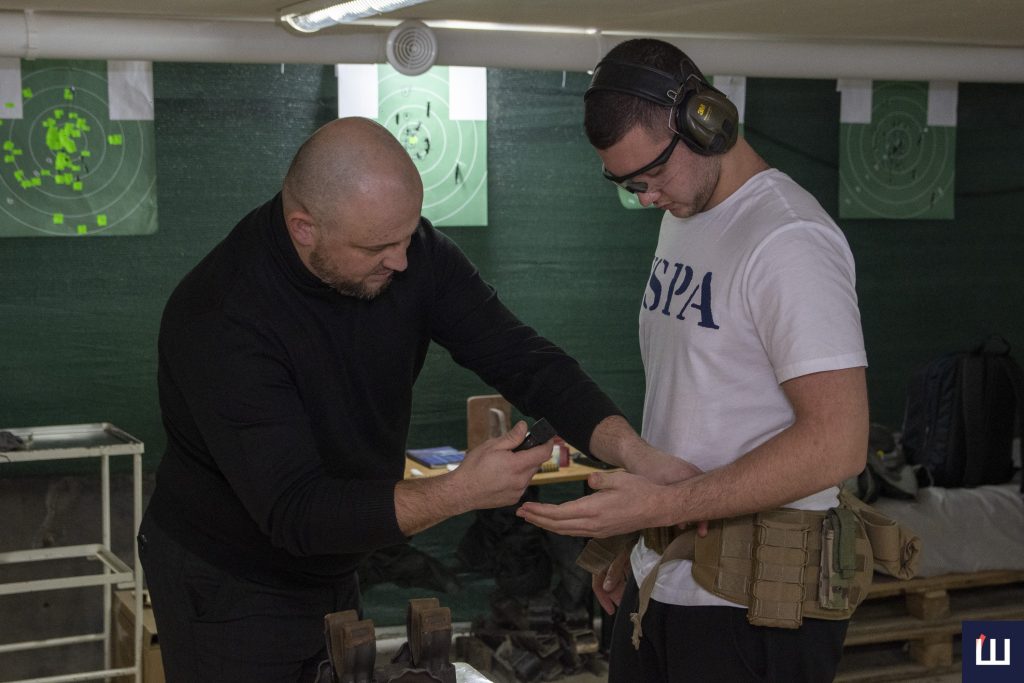 «Травматична – моя особиста зброя, з якою я приходжу, й учні в моїй присутності працюють за підписом із техніки безпеки. Вони проходять декілька годин інструктажу, до моменту, поки беруть у руки якийсь набій. Працюємо згідно з технікою безпеки, в захисних стрілецьких окулярах, навушниках. І ми відпрацюємо різні речі: і з кобурою, і з поясами РПС та іншим спорядженням», – розповідає інструктор.