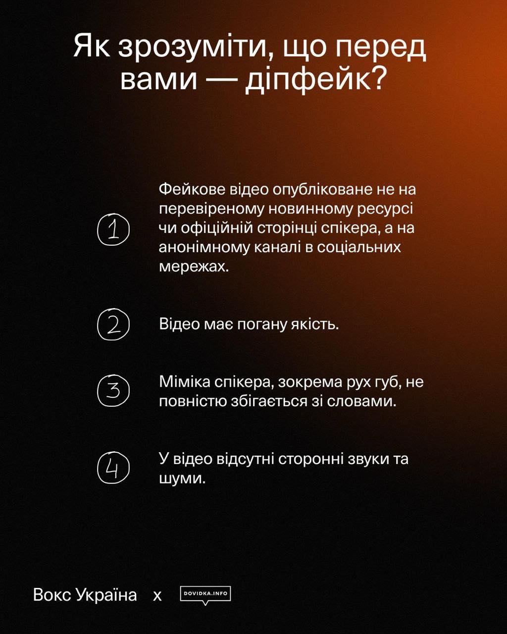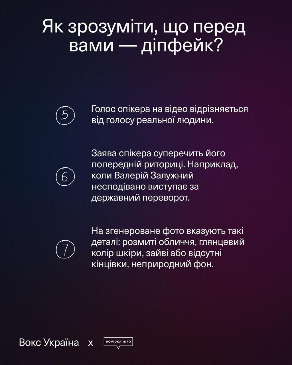 Як розпізнати діпфейки, читайте у матеріалі, підготовленому проєктом Dovidka.info спільно з VoxCheck.