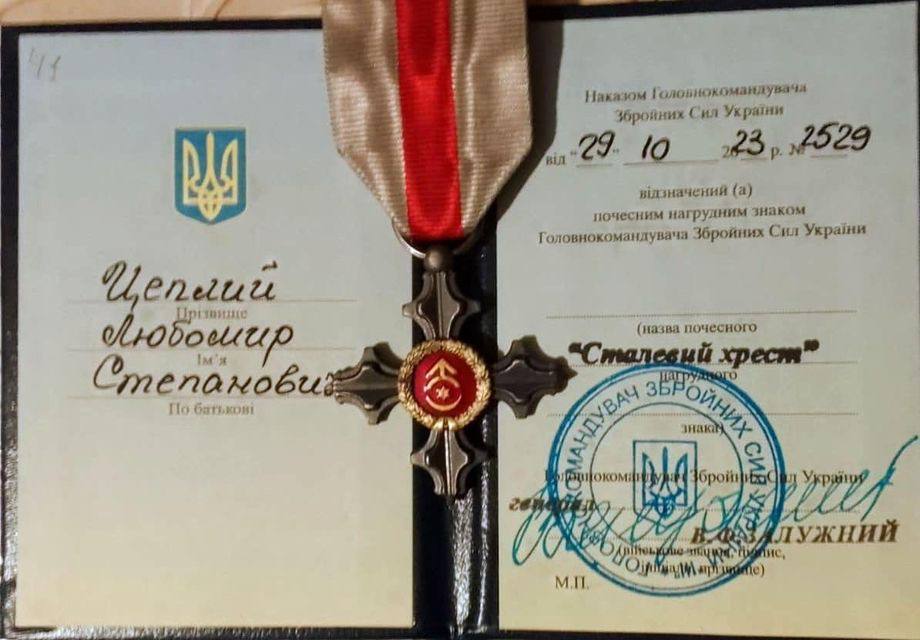 Почесний нагрудний знак Головнокомандувача Збройних сил України отримав військовий із Берегомета Любомир Цеплий.