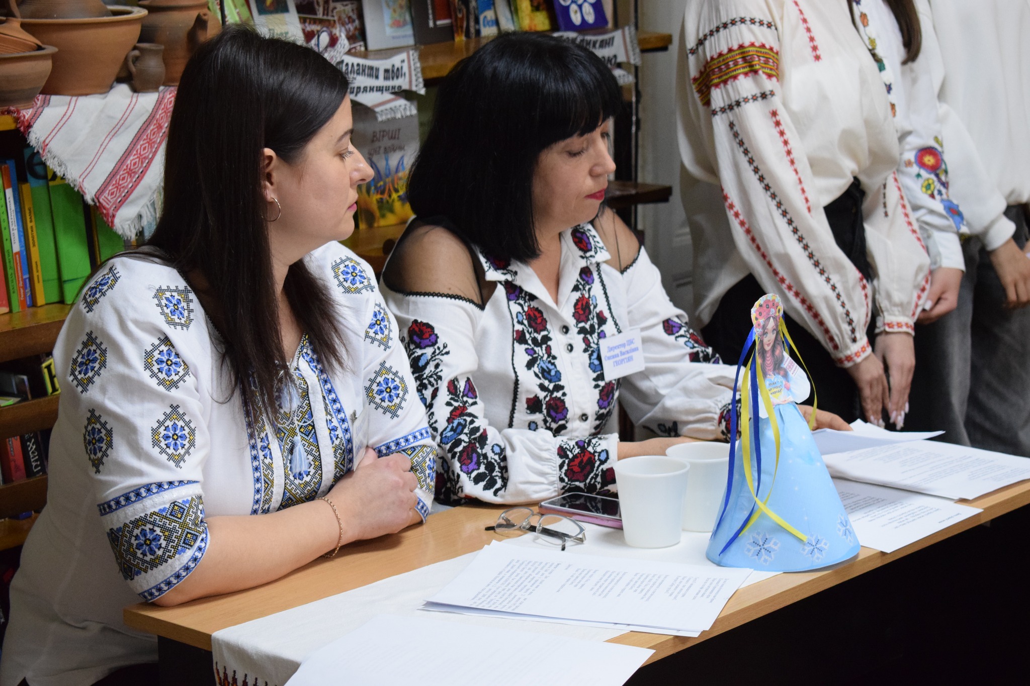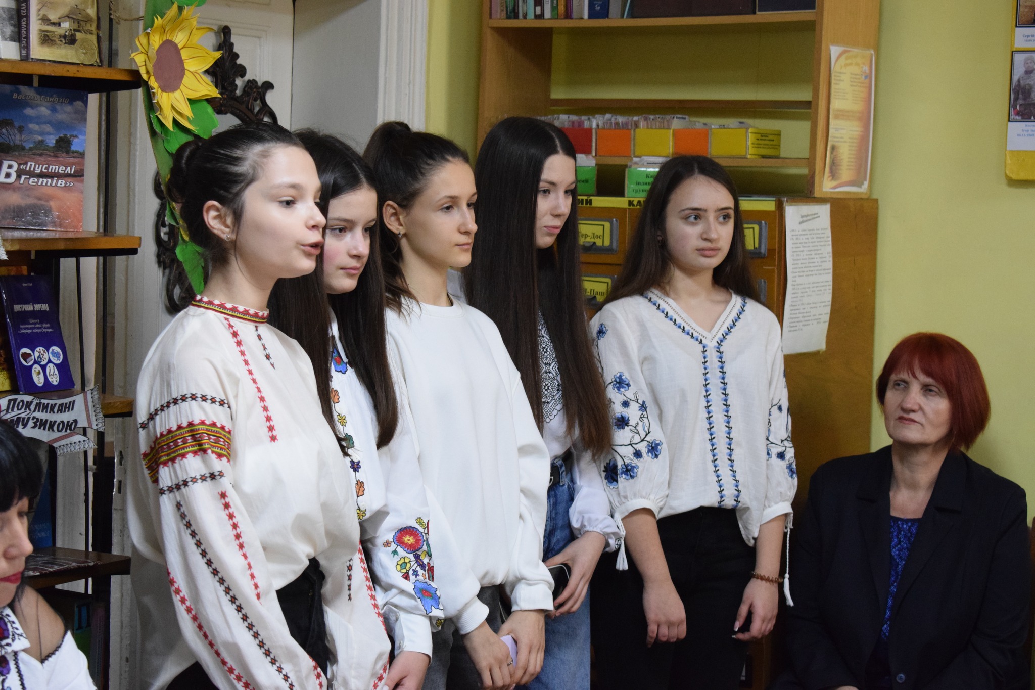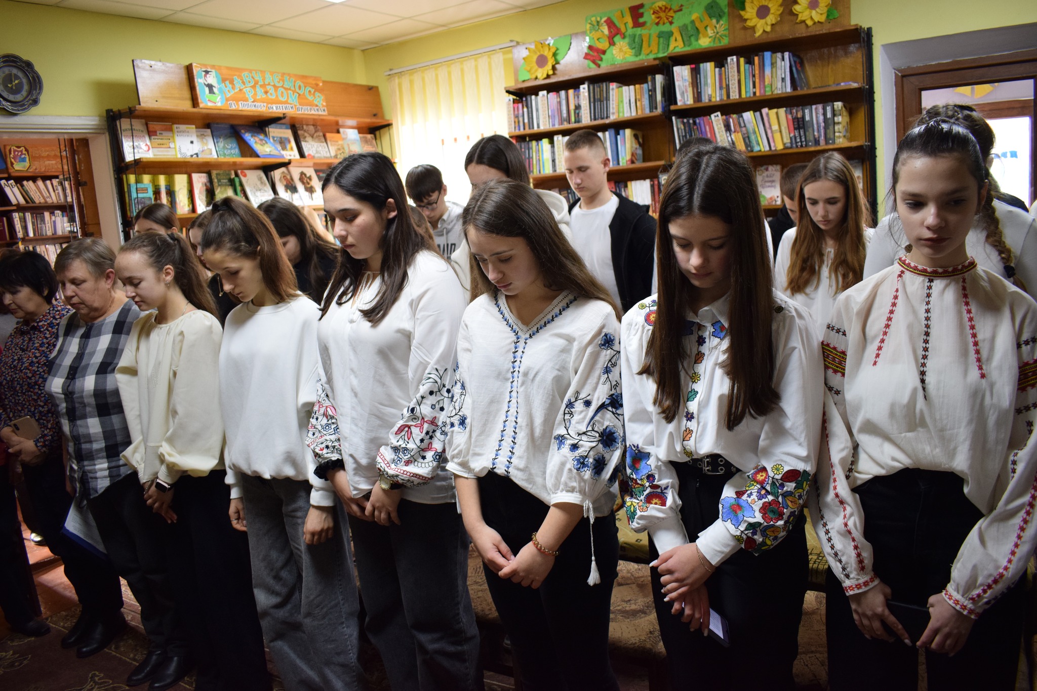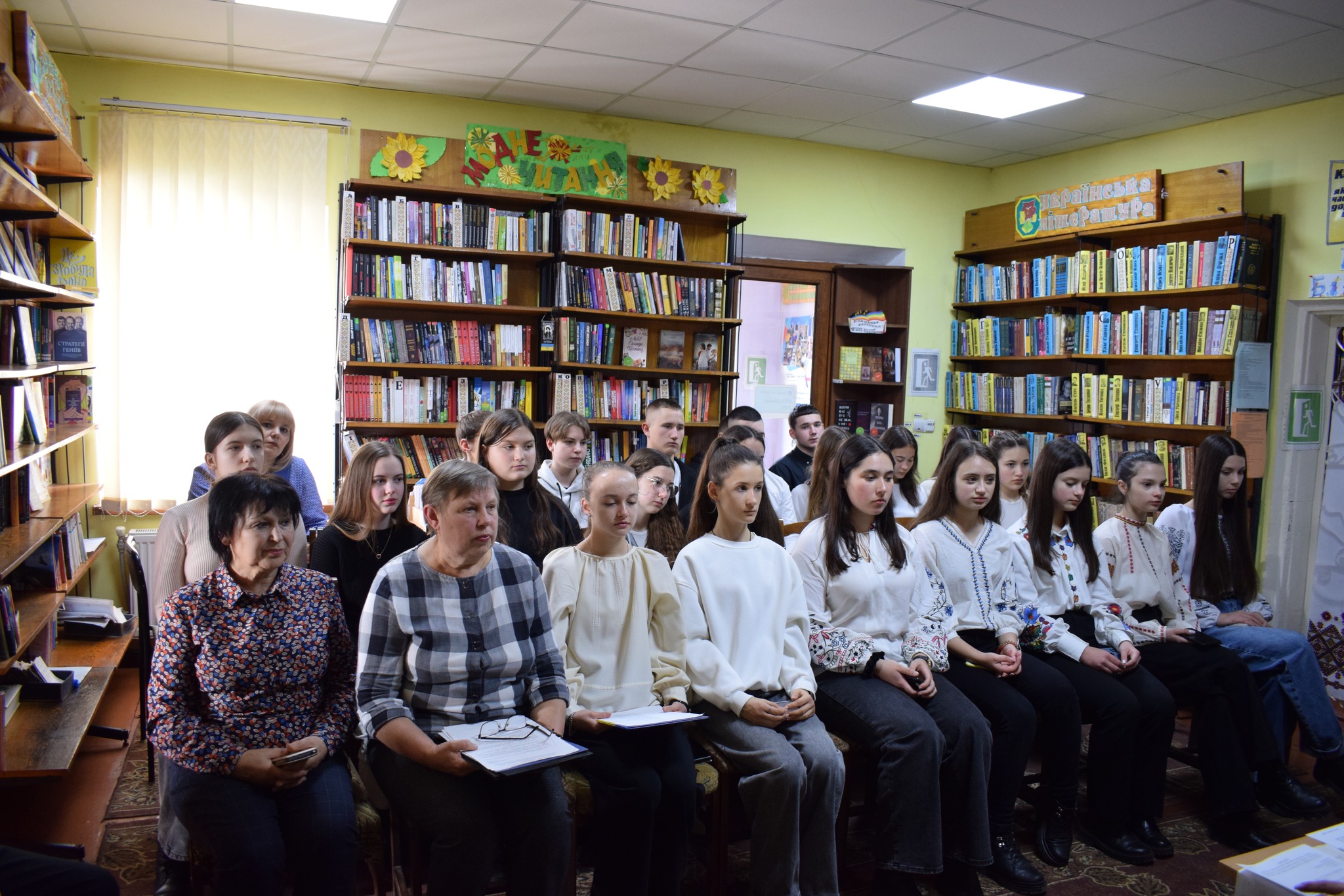 На зустріч завітали учні опорного закладу «Сокирянський ліцей №1» спільно із вчителем Валентиною Мельник; місцева поетеса, член Національної спілки журналістів України – Галина Будняк; активна читачка бібліотеки, поетеса, яка знайшла домівку на Сокирянщині у зв’язку із воєнними діями, внутрішня переселенка – Галина Скрипник; працівники бібліотеки.