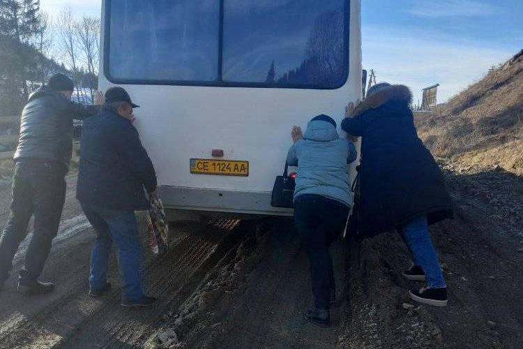 Штовхають автобус через ями: на Буковині дорога державного значення стала непроїзною