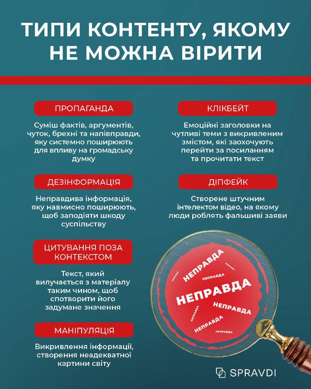 2. Дезінформація – неправдива інформація, яку навмисно поширюють, щоб заподіяти шкоду суспільству.