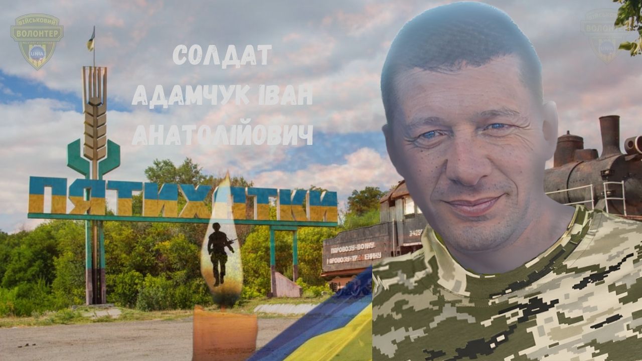 Солдат АДАМЧУК покинув цей світ 03 березня 2024 року в КП Дніпропетровська обласна клінічна лікарня ім. Мечникова, отримавши тяжкі ушкодження внаслідок військових дій поблизу населеного пункту П’ятихатки Запорізької області.