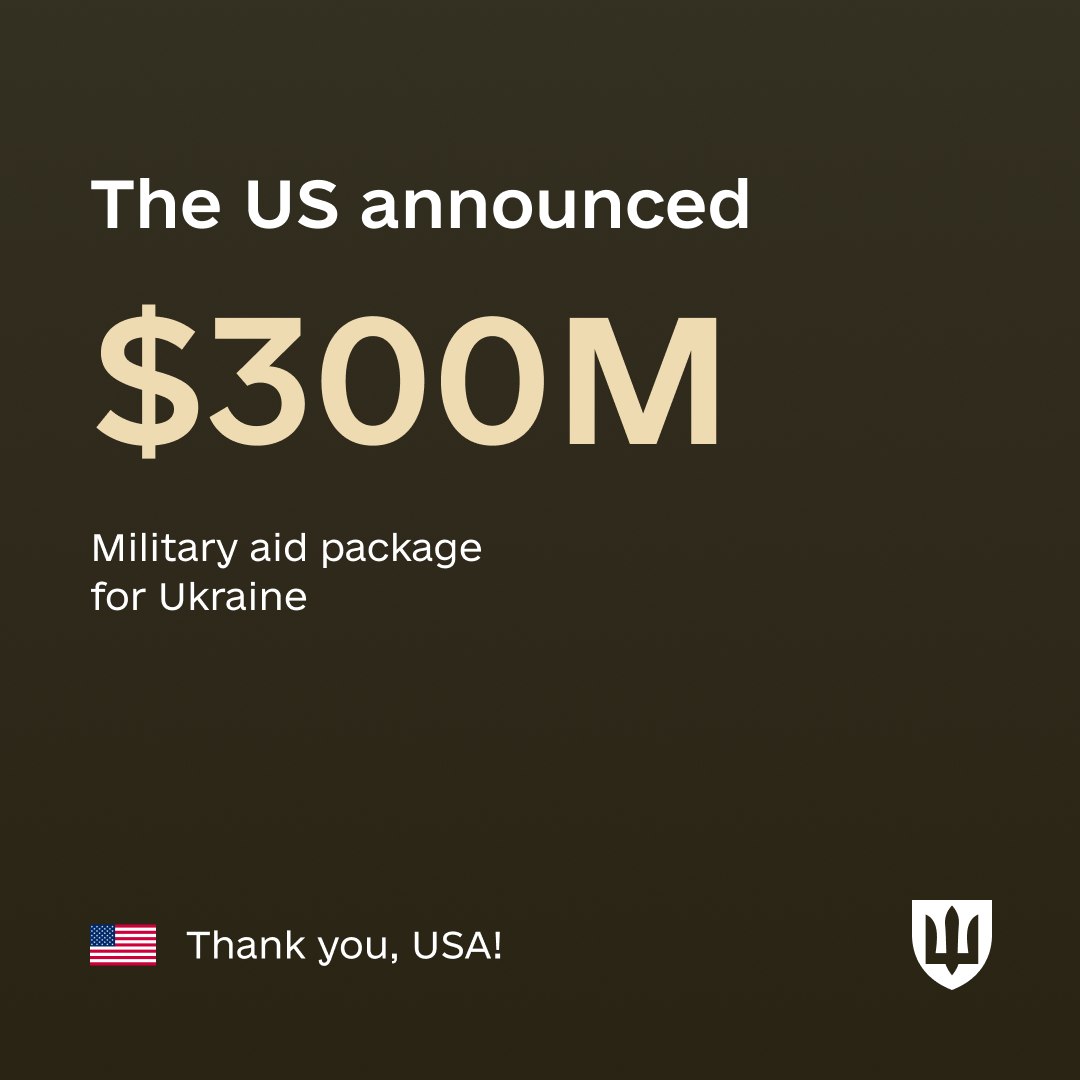 «Сполучені Штати нададуть Україні новий пакет військової допомоги вартістю 300 мільйонів доларів, який включає забезпечення потреб протиповітряної оборони, артилерії та протитанкової техніки. Я вдячний американському народу та особисто міністру оборони США Ллойду Остіну за непохитну підтримку», – наголосив Умєров.