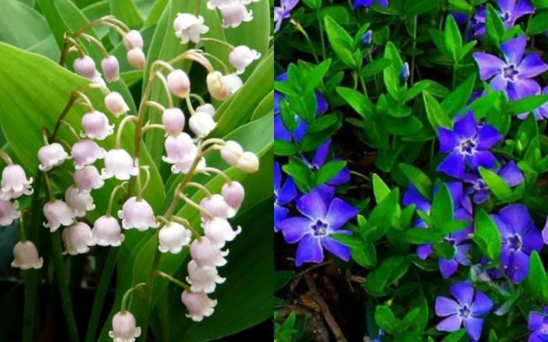 Барвінок, конвалія, деревій, примула. Не потребують особливого догляду, можуть адаптуватися до сухого ґрунту.