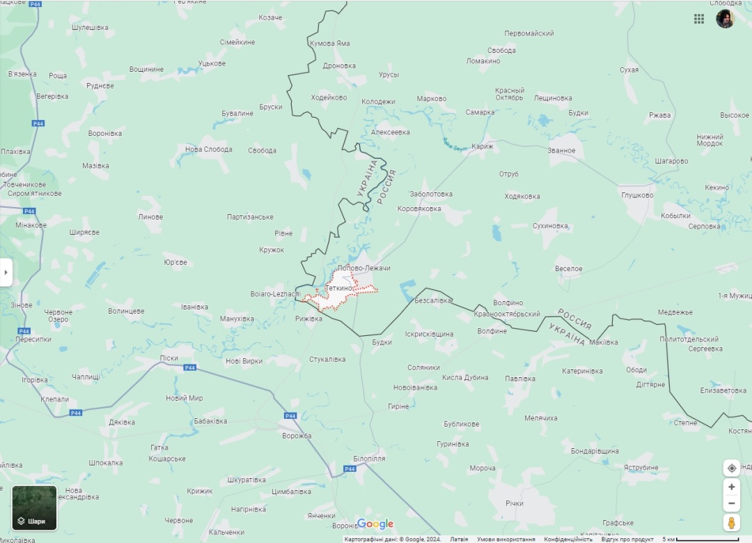 В Курській області напрямок входження один – смт Тьоткіно, яке знаходиться неподалік кордону та з трьох боків оточене українською територією, що зручно для проникнення (окрім західних заболочених околиць).