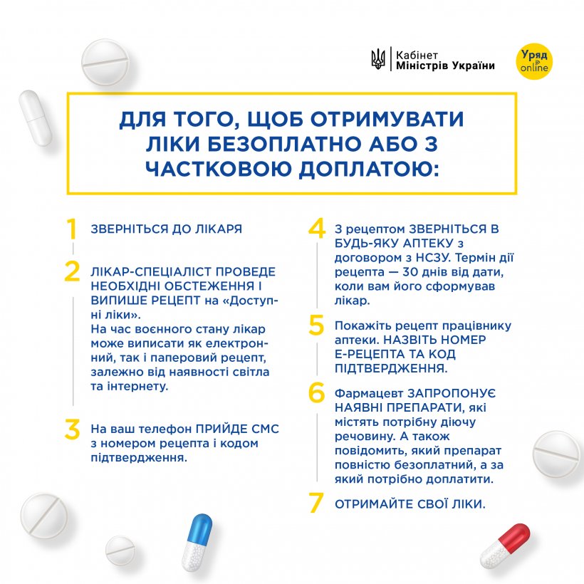 В Україні діє урядова програма “Доступні ліки”. За нею українці можуть отримати потрібні медикаменти безплатно або з невеликою доплатою.