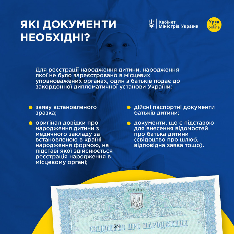 Як отримати свідоцтво про народження дитини, яка народилася за кордоном у громадян України?