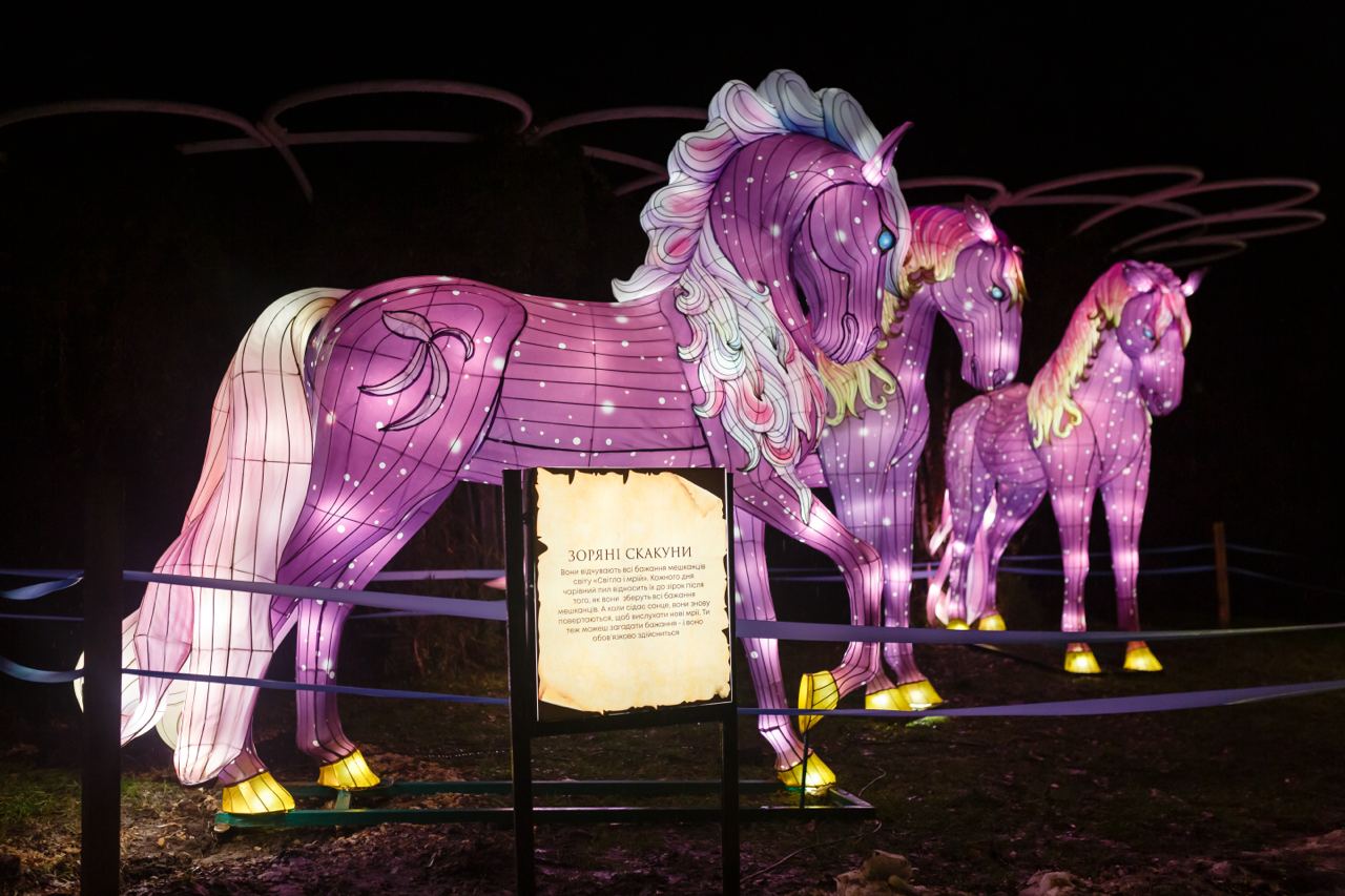 На відвідувачів чекає тематичний парк ілюмінацій і масштабних світлових інсталяцій, кожна з яких сягає до семи метрів заввишки. За словами організаторів, всі фігури виготовлені вручну з 50 000 ліхтариків, натурального шовку та спеціальних led-ламп.