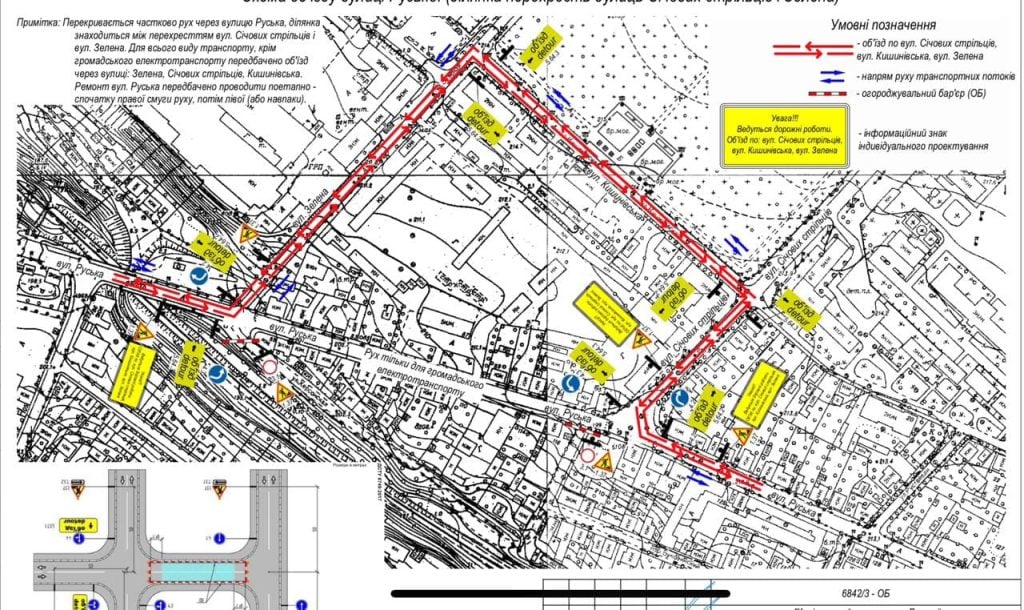 Приватний транспорт може об’їхати ділянку дороги через вулиці Січових Стрільців, Кишинівську, Зелену. Громадський транспорт поки курсуватиме без змін.