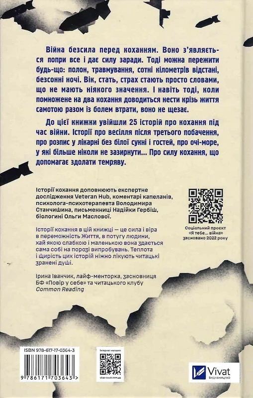 Це збірка 25 реальних історій кохання українців та українок: військових, госпітальєрок, волонтерів/ок, рятувальників/ць, поліціянтів/ок, журналістів/ок та переселенців/ок. Книга є частиною однойменного соціального проєкту, що архівує такі історії з початку повномасштабного вторгнення росії в Україну.