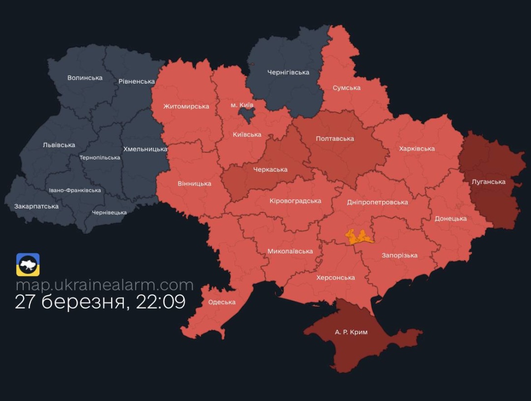 Як повідомляє Укрінформ з посиланням на Телеграм Повітряних сил, о 22:55оголосили про відбій поітряної тривоги.
