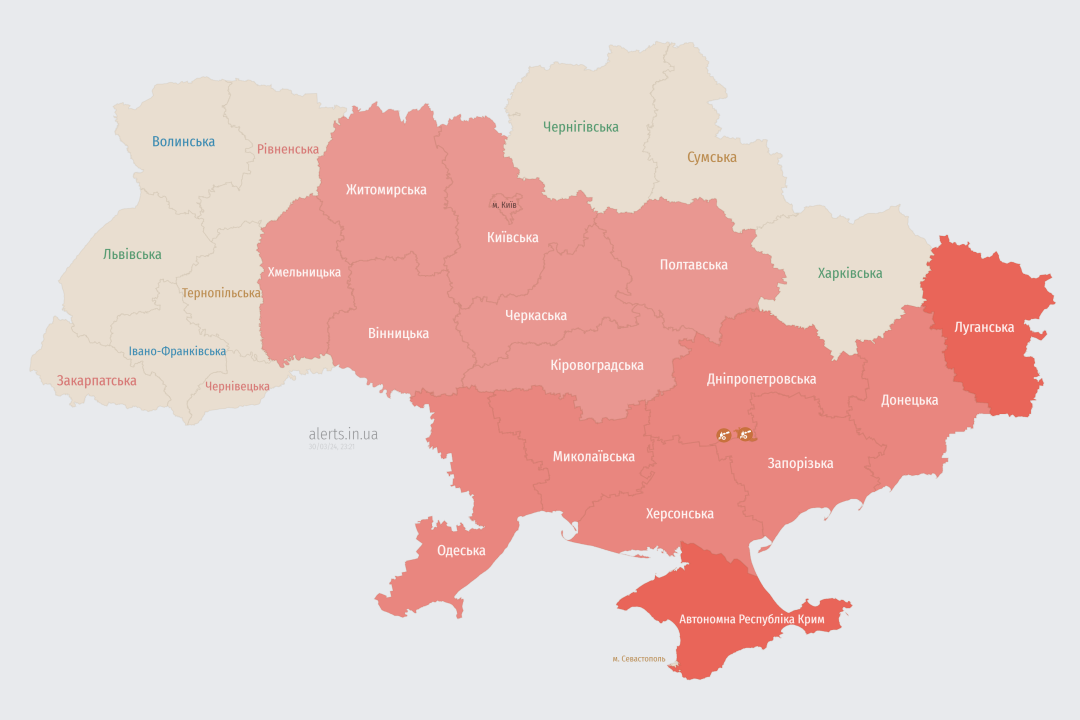 У Києві та більшості областей оголошували повітряну тривогу через загрозу балістики