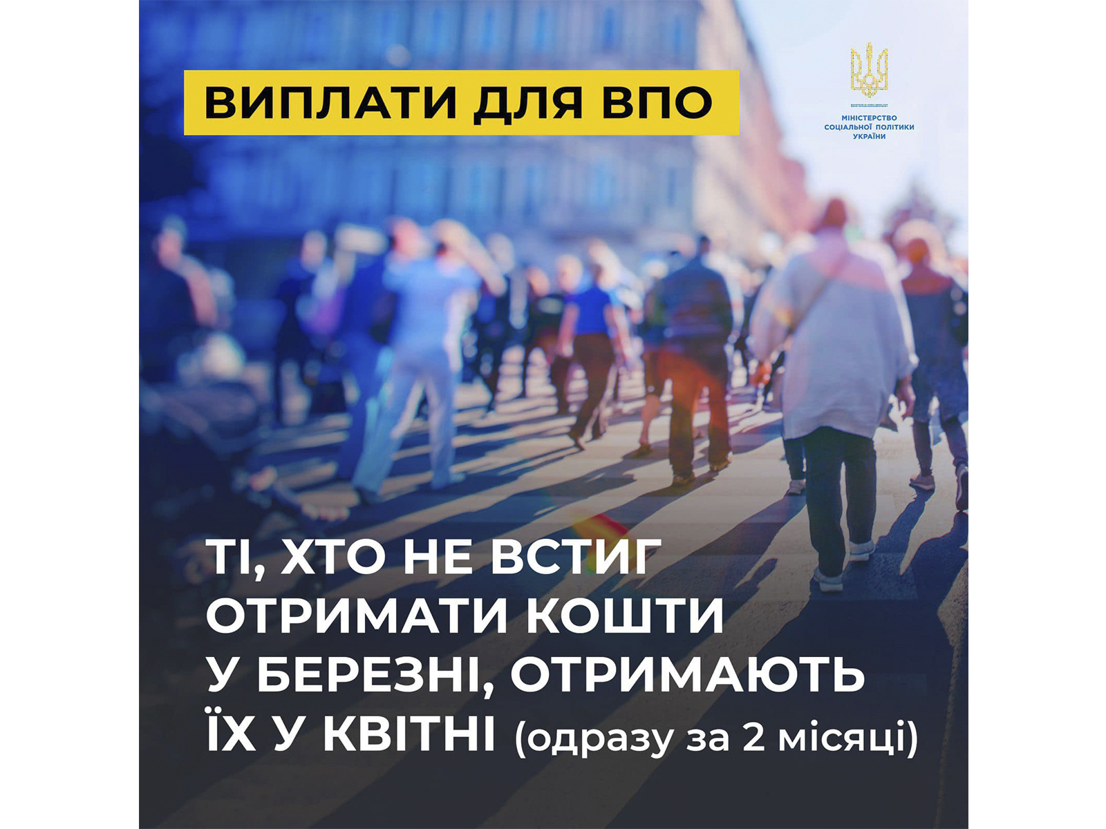 Ті, хто не встиг отримати кошти у березні, отримають їх у квітні (одразу за 2 місяці)