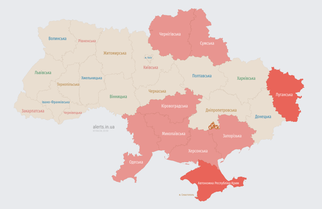 Актуальна карта повітряних тривог станом на 7.04, 23:58