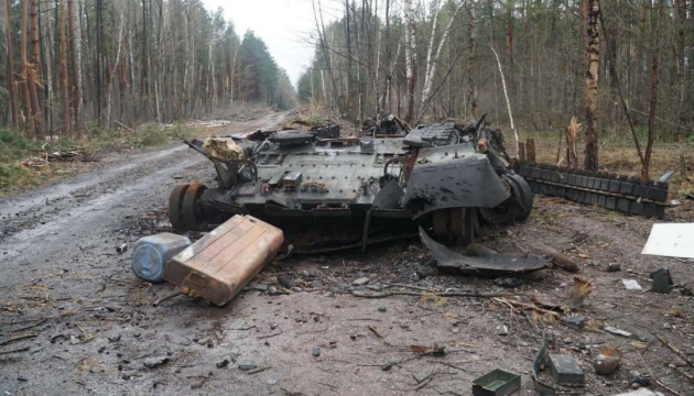 Також Сили оборони знищили 7110 (+23) російських танків, бойових броньованих машин ‒ 13620 (+45), артилерійських систем – 11386 (+30), РСЗВ – 1039 (+0), засобів ППО ‒ 753 (+2), літаків – 347 (+0), гелікоптерів – 325 (+0), БПЛА оперативно-тактичного рівня – 9033 (+37), крилатих ракет ‒ 2065 (+0), кораблів / катерів ‒ 26 (+0), підводних човнів – 1 (+0), автомобільної техніки та автоцистерн – 15181 (+71), спеціальнї техніки ‒ 1868 (+1).